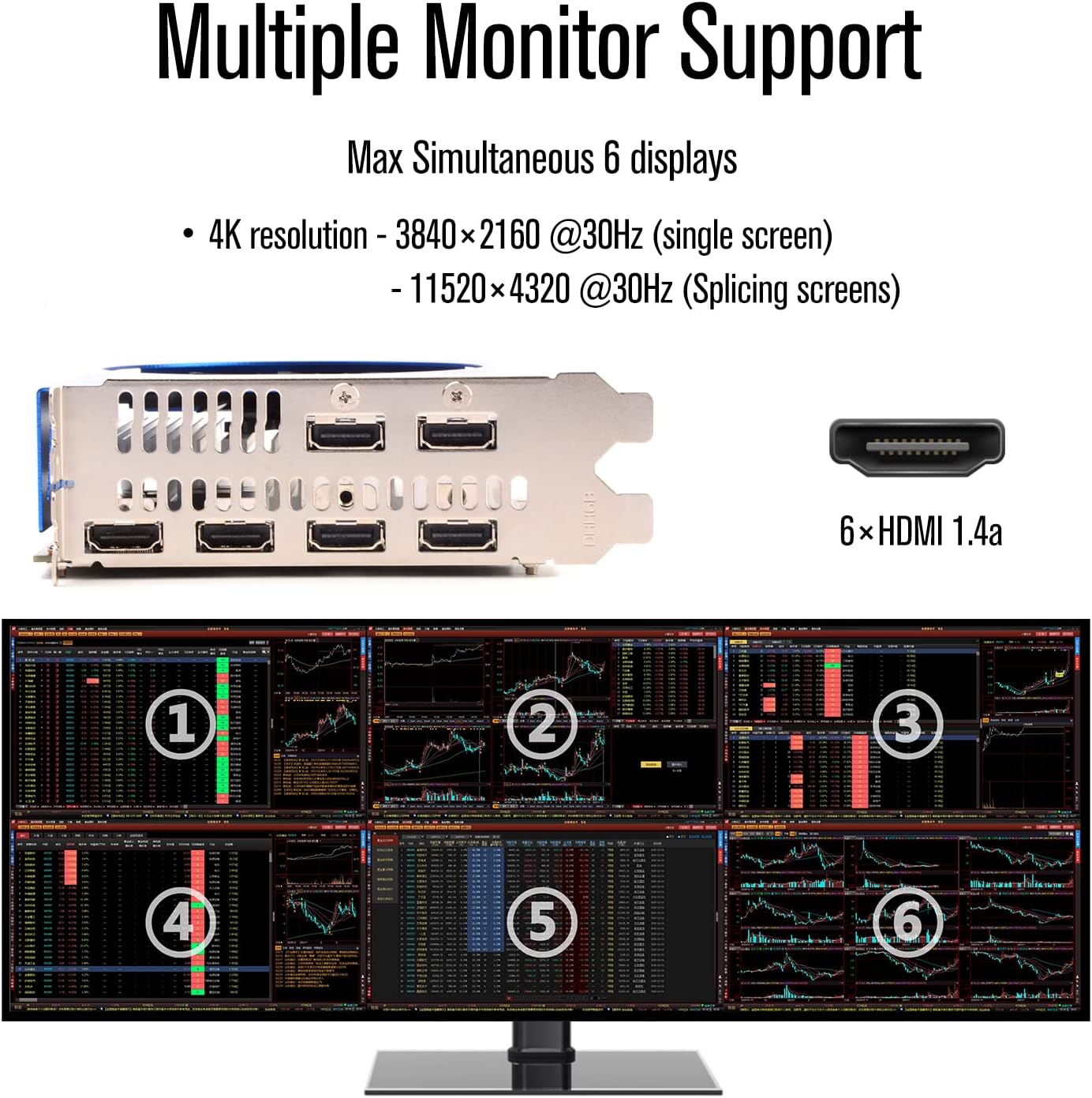 - Wide Range of OS Support: This 6HDMI multiple monitors graphics card works well with a wide range of operating system, including Windows 10 32/64 bit,Windows 8.1 - 32/64 bit,Windows 7 32/64 bit